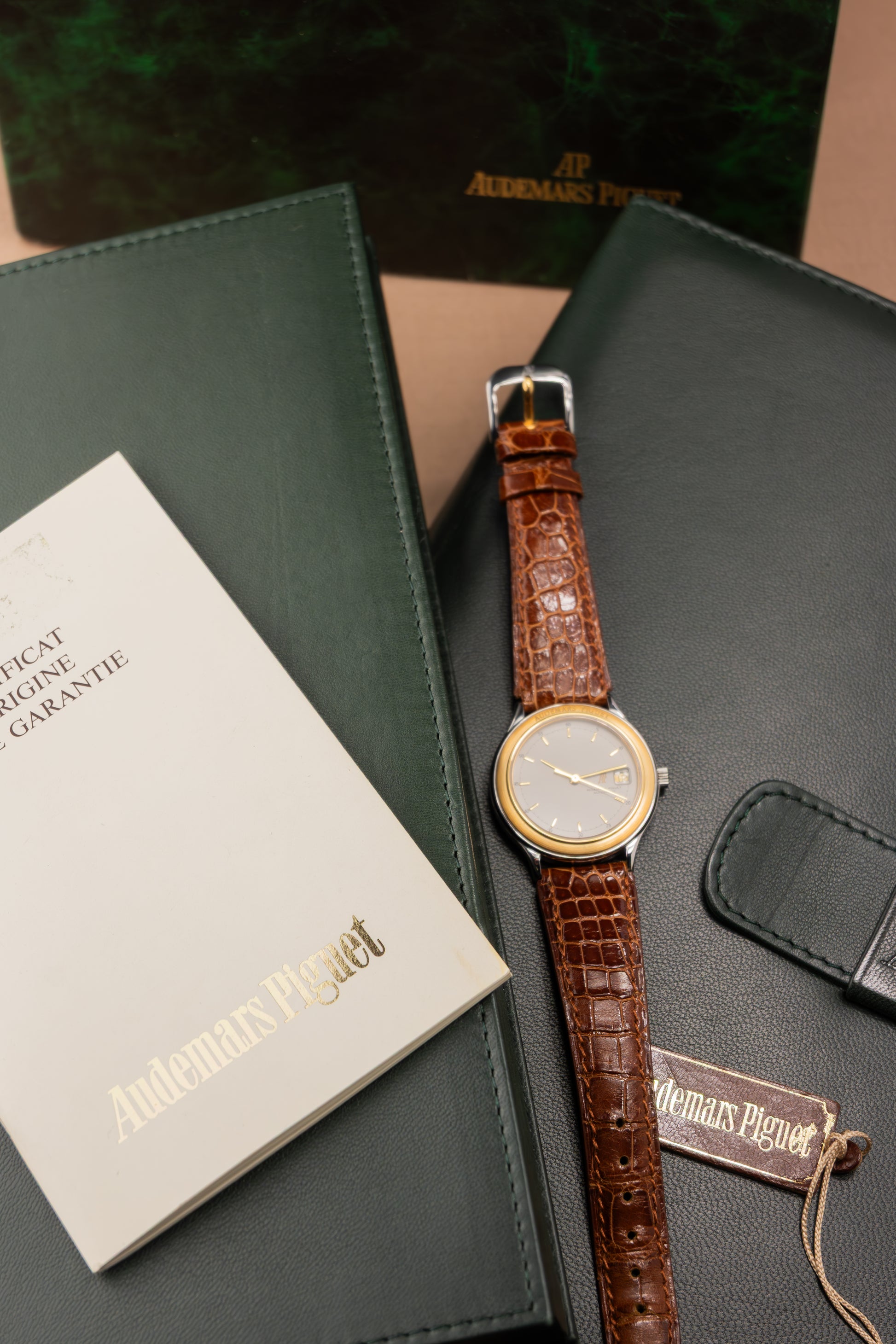 De Full set Audemars Piguet Huitìeme is het icoon als het gaat om de dress watch horloges. Deze referentie is vooral bekend om zijn uitvoering met de goud stalen kast en goud stalen AP clasp. Dit tijdloze ontwerp wordt op de dag van vandaag niet meer uitgebracht wat het een must have maakt voor in de collectie.