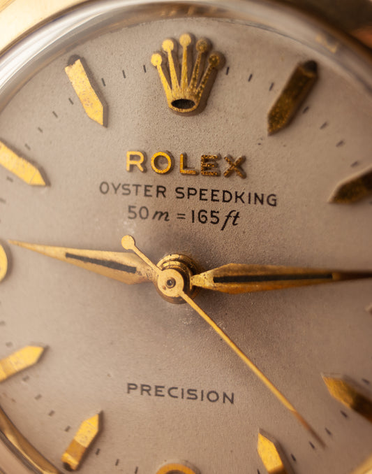 Deze ref. 1601 combineert de 36 mm Oyster stalen kast, witgouden fluted bezel, stalen jubilee band en zilver kleurige wijzerplaat. We zien de wijzerplaat met stalen uurmarkeringen en stalen wijzers, wat het nog meer uitgesproken maakt.