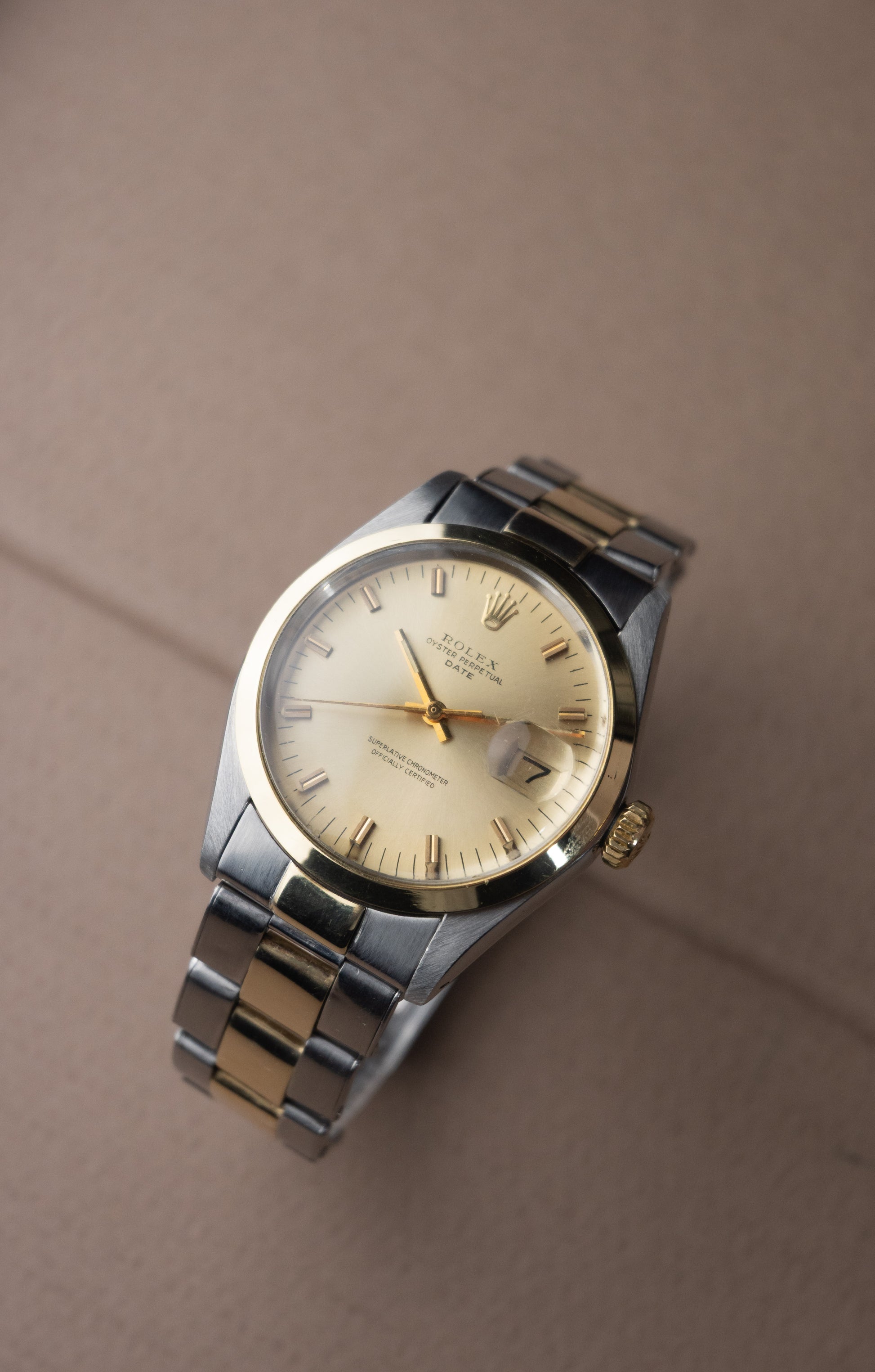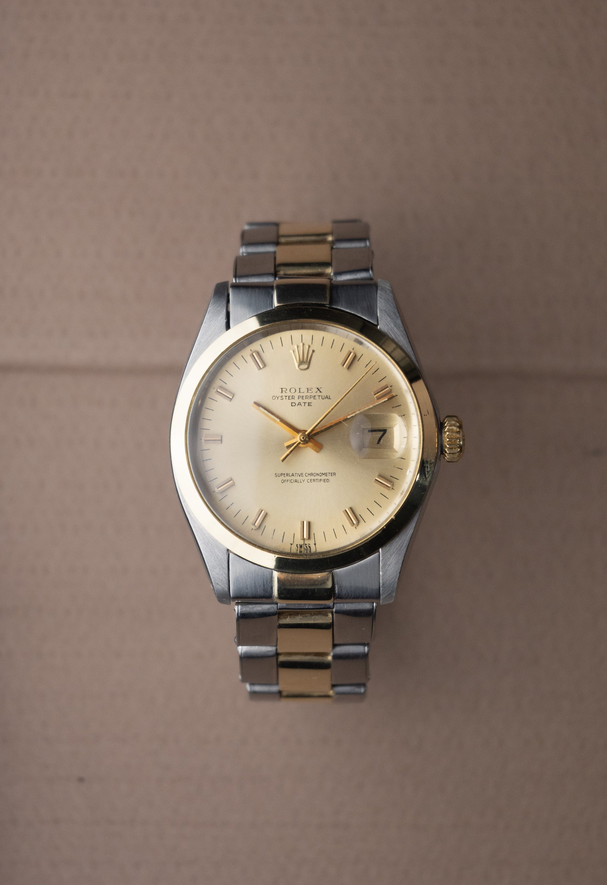 De Rolex Date 1500 is het icoon als het gaat om de 34mm serie. Deze referentie is vooral bekend om zijn uitvoering met de two tone Oyster bracelet en 14 karaat geel gouden smooth bezel. Dit tijdloze ontwerp wordt op de dag van vandaag niet meer uitgebracht wat het een must have maakt voor in de collectie.