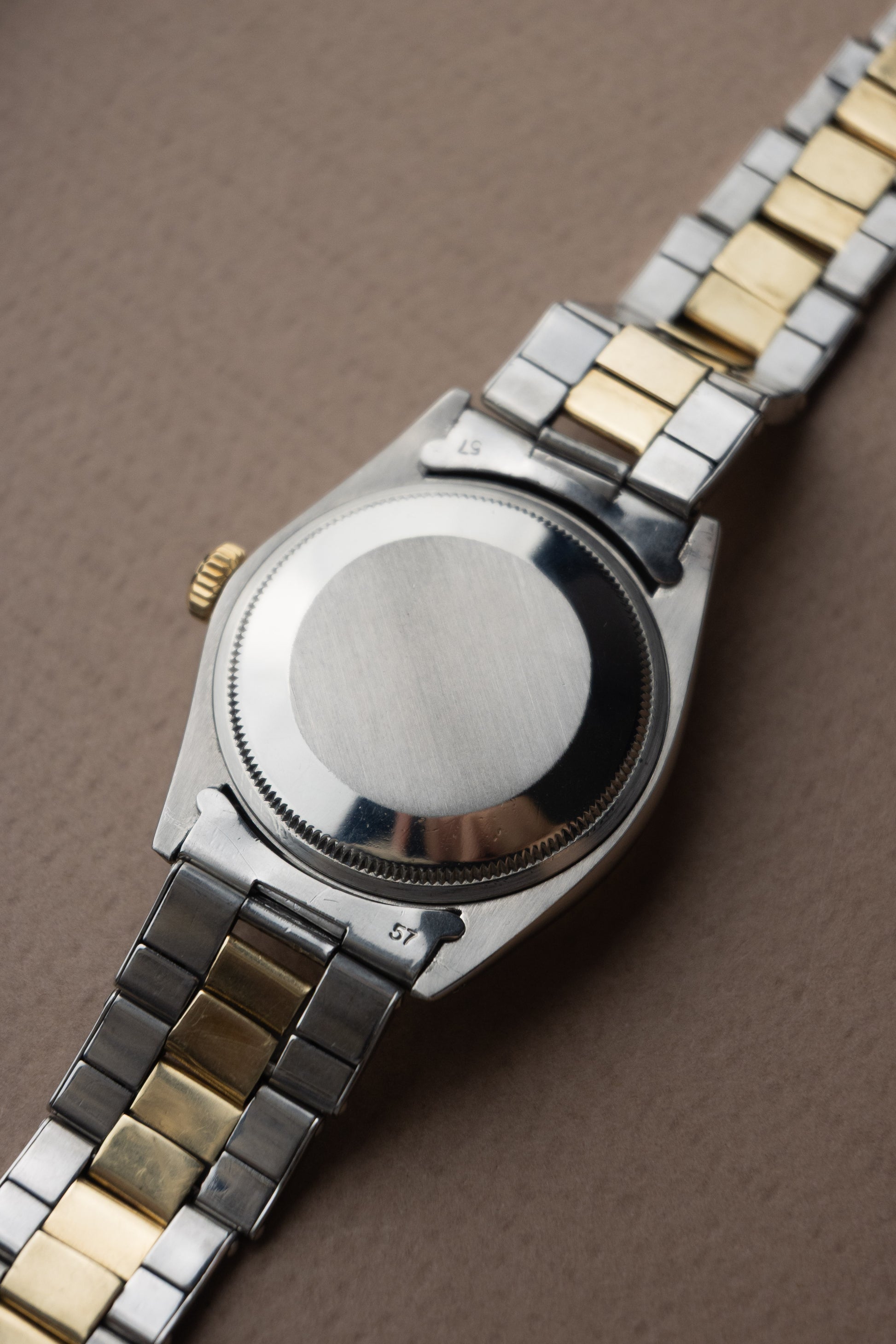 Deze ref. 1500 combineert de 34 mm Oyster stalen kast, geel gouden smooth bezel, two tone Oyster band en champagne kleurige wijzerplaat. We zien de wijzerplaat met goud gekleurde uurmarkeringen en goud kleurige wijzers wat het nog meer uitgesproken maakt!