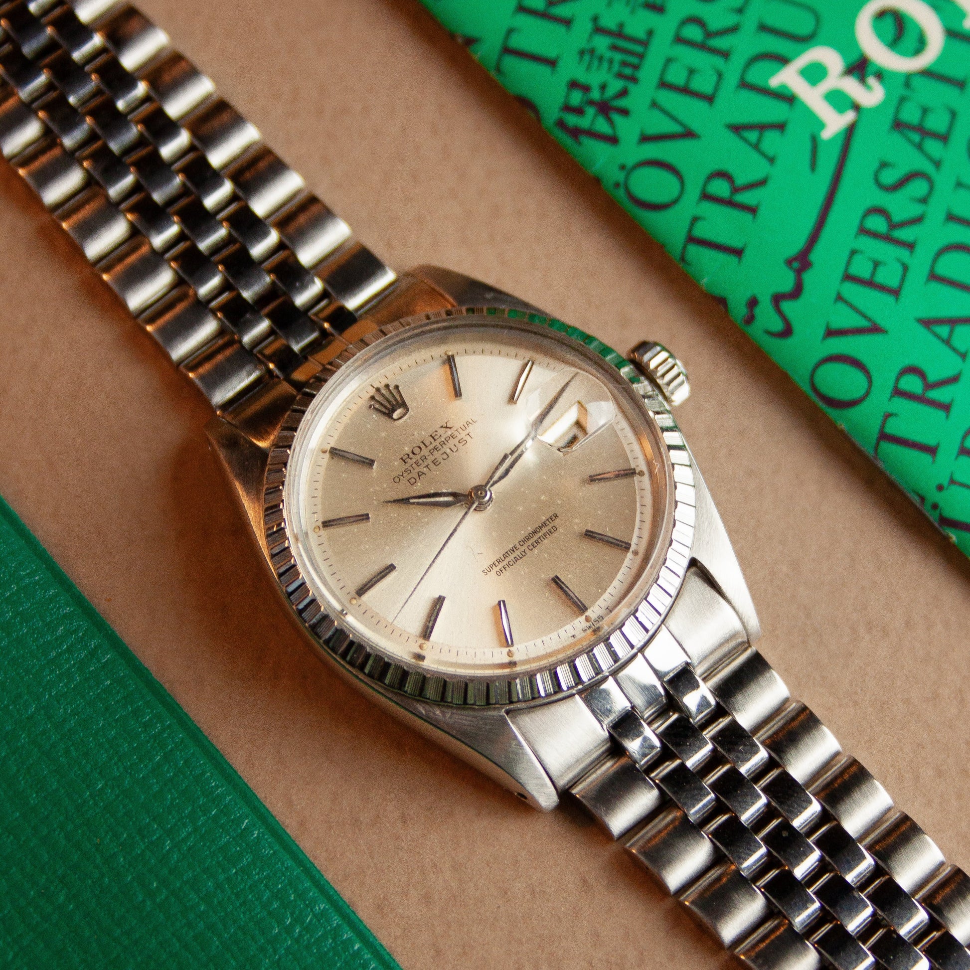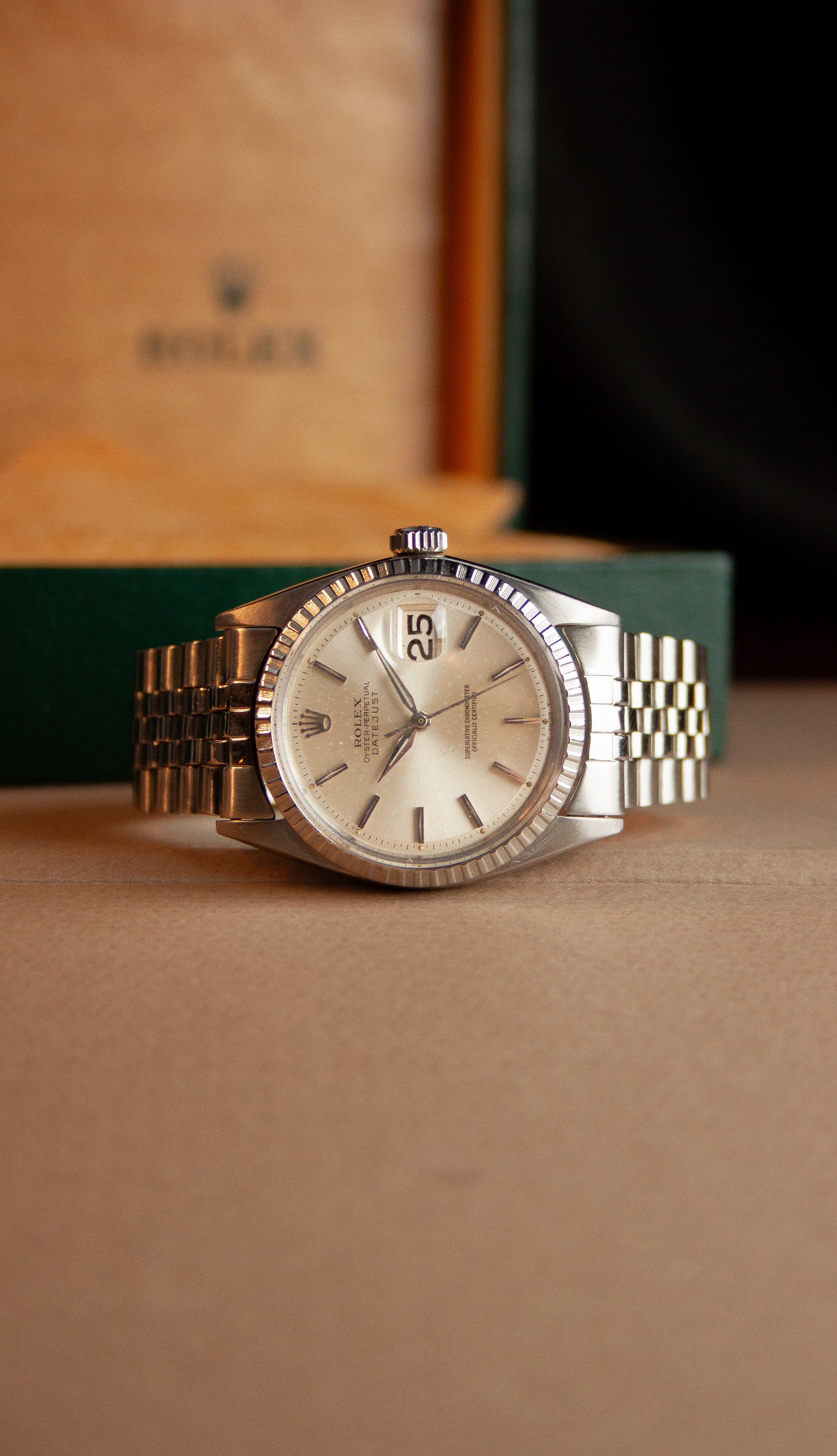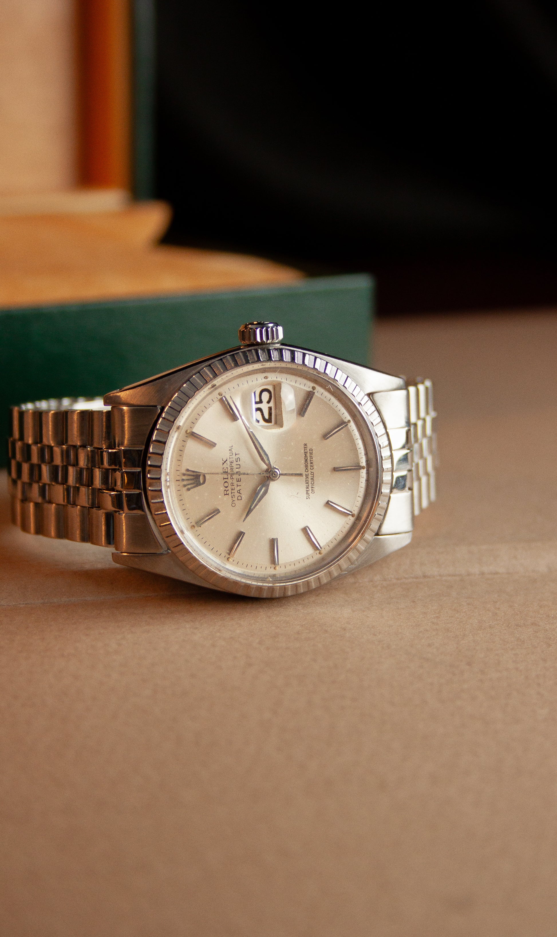 De Rolex Datejust 1603 is het icoon als het gaat om de Datejust serie. Deze referentie is vooral bekend om zijn uitvoering met de Jubilee bracelet en Oyster stalen engine turned bezel. Dit tijdloze ontwerp wordt op de dag van vandaag niet meer uitgebracht wat het een must have maakt voor in de collectie.