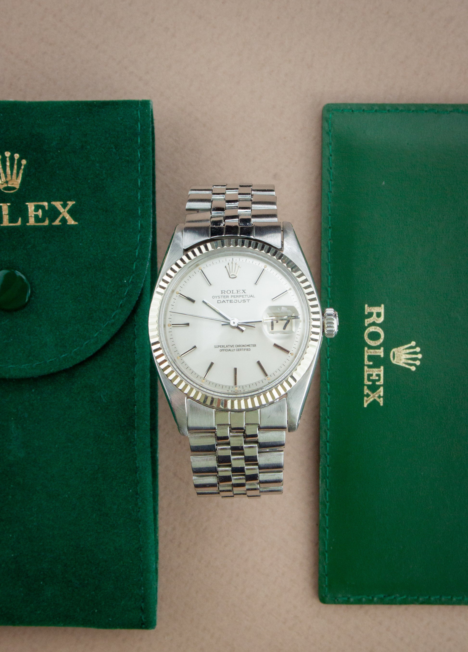 De Rolex Datejust 1601 is het icoon als het gaat om de Datejust serie. Deze referentie is vooral bekend om zijn uitvoering met de Jubilee bracelet en 18 karaat witgouden fluted bezel. Dit tijdloze ontwerp wordt op de dag van vandaag nog uitgebracht wat het een must have maakt voor in de collectie.